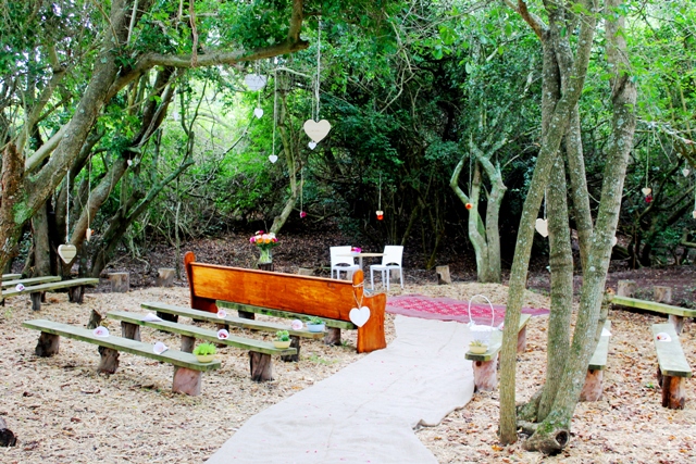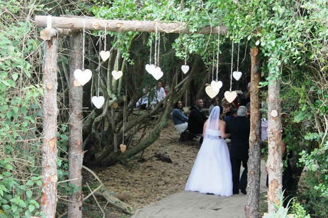 Our wedding venue outside of Plettenberg Bay offers a splendidly spacious function room (40-120 people) that opens onto a large deck area and features removable weather screens, a large fireplace and bar. Choose between a wooden chapel and an outdoor bush chapel. We can accommodate 40 people in our beautifully appointed rooms and offer special weekend wedding tariffs for wedding guests. We do on site catering, but also offer self catering options.
