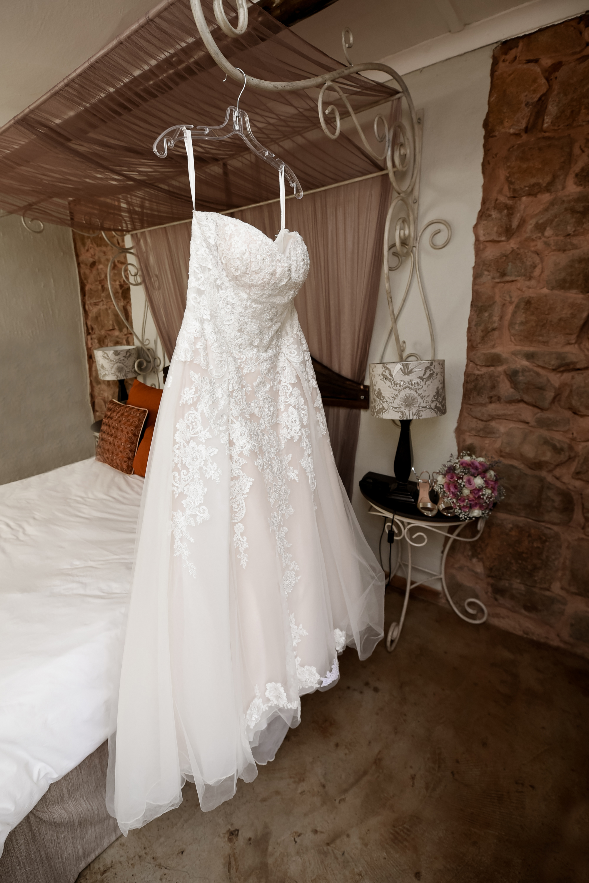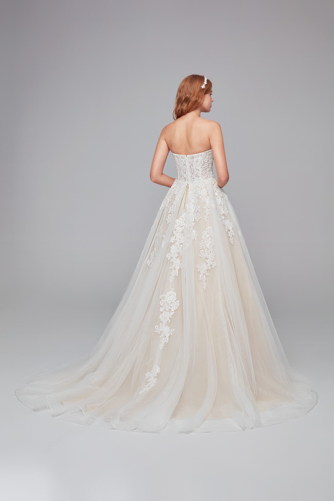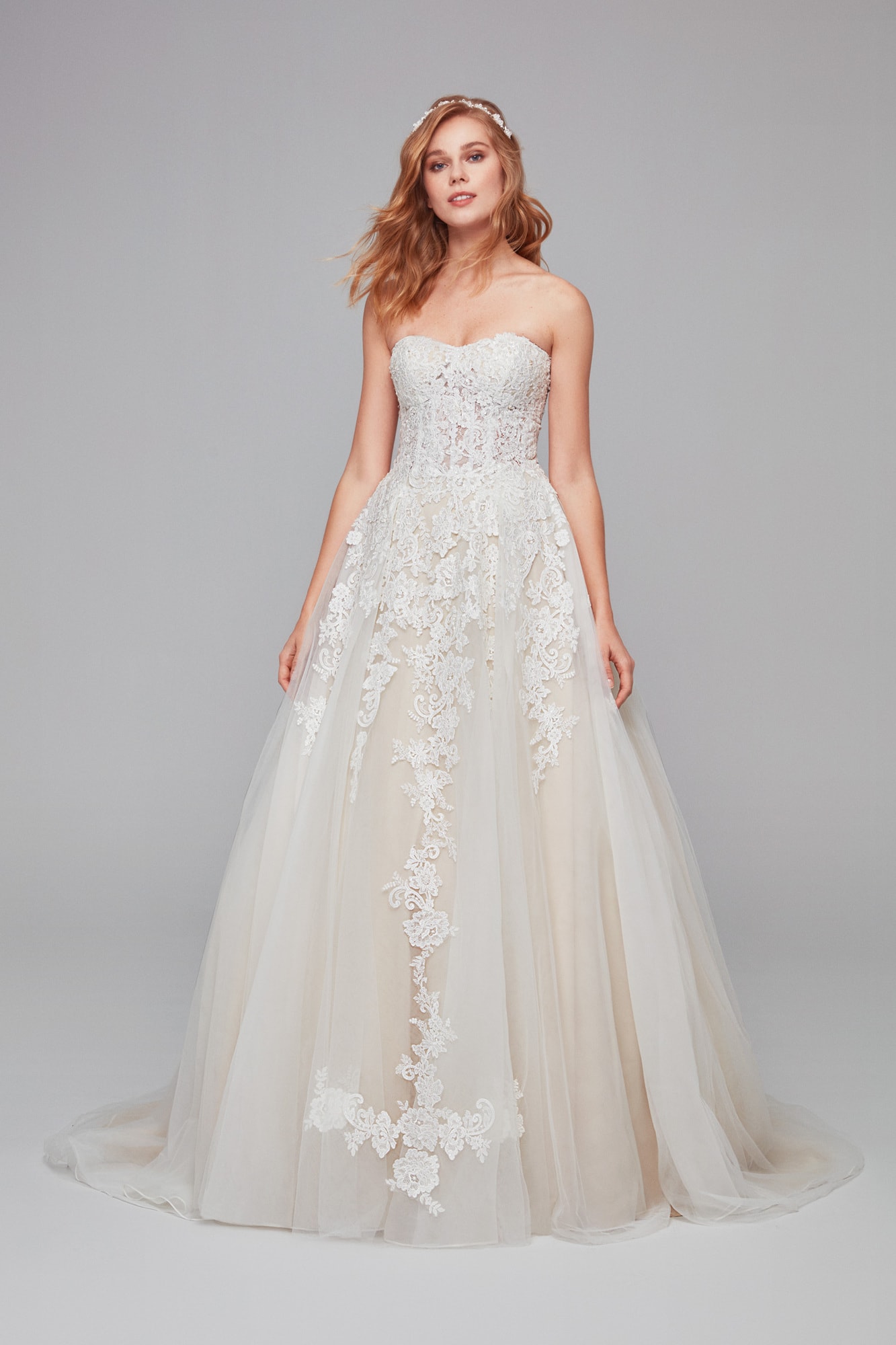 Sweetheart lace and tulle ball gown with applique detail skirt.