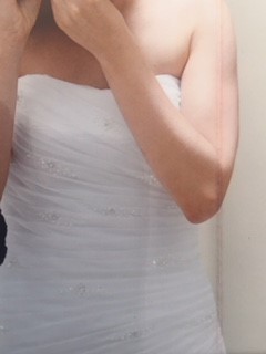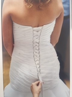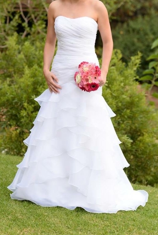 Organza Mermaid Wedding dress.  Worn once and has been professionally cleaned.  Bought from Bridal & Tuxedo in Fourways.  Veil included (veil pictures will be sent directly to interested buyers).  Option of size 6 shoe as well.